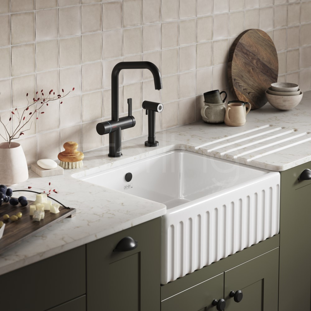 A standout feature of the Chiltern design is its fluted apron front, adding texture and character while maintaining the timeless appeal of a classic farmhouse sink. This decorative detail allows the sink to sit comfortably in both traditional and more contemporary kitchen settings.