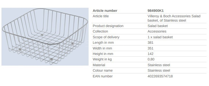 S/Steel Basket to suit Subway 50SU, Cisterna 50